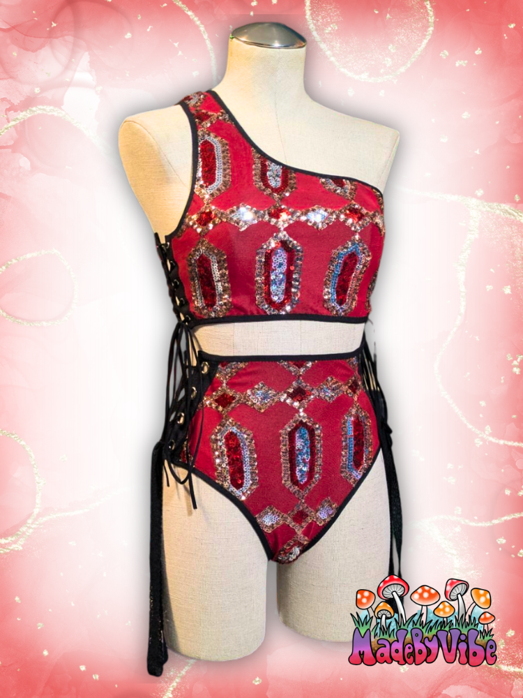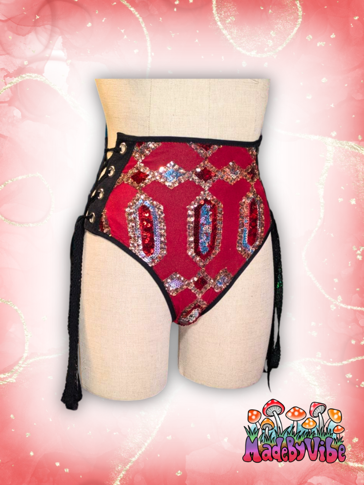 Royal Ruby Lace Up Rave Bottoms - Ready to Ship