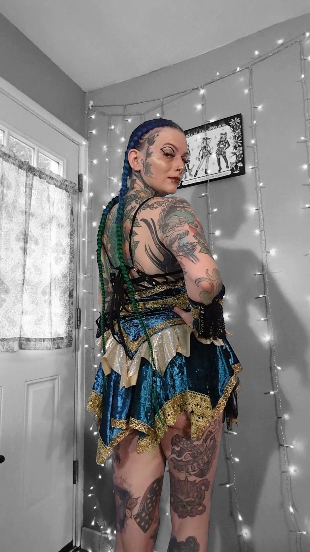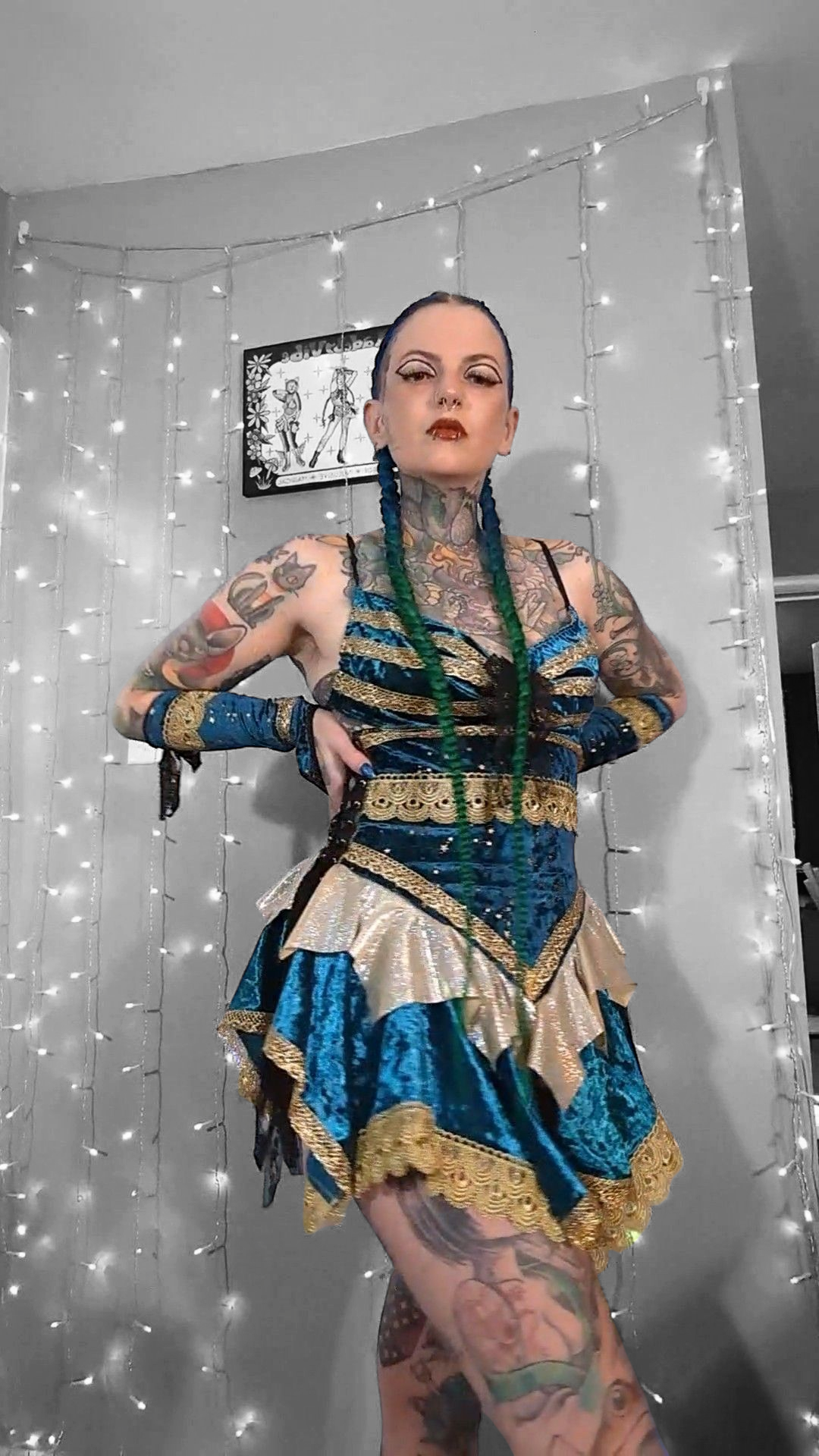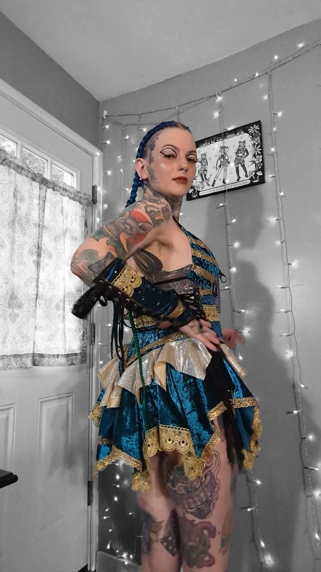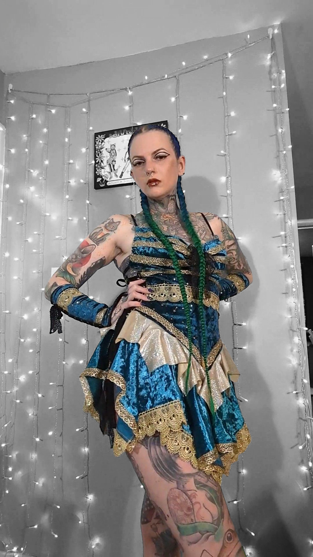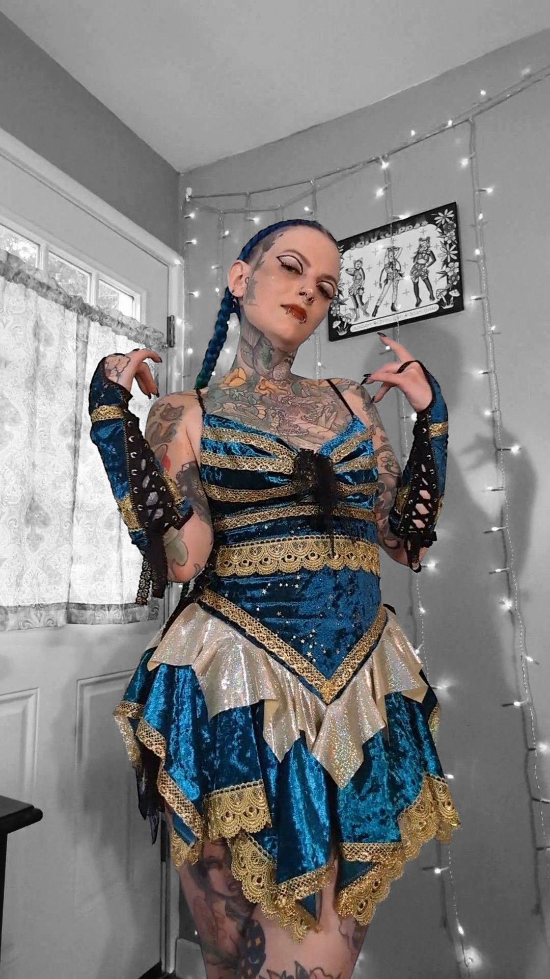 Inspired by the Greek goddess of sight Theia, this gorgeous one-of-a-kind dress features blue velvet fabric & elegant gold accents. Handmade by me!